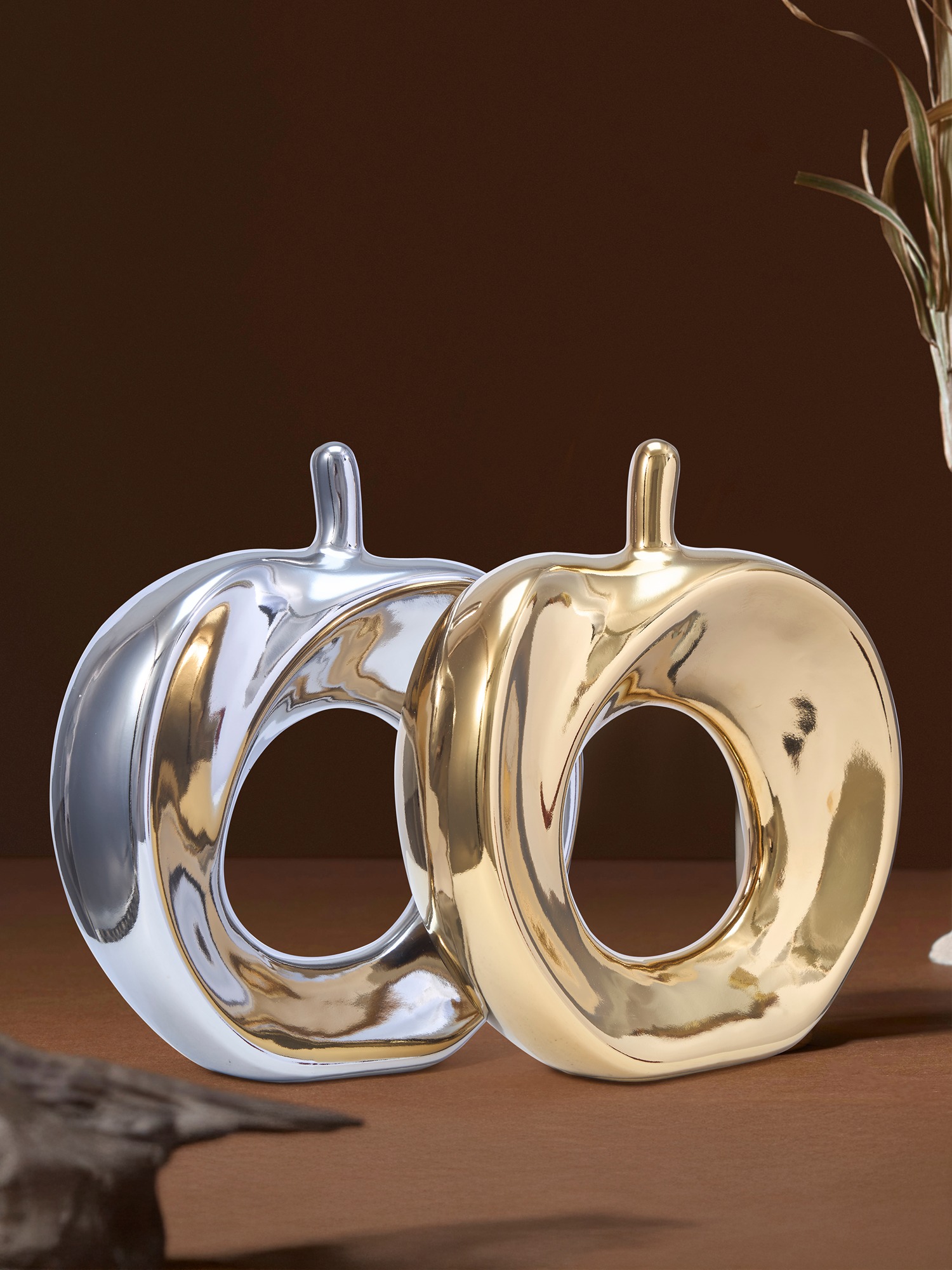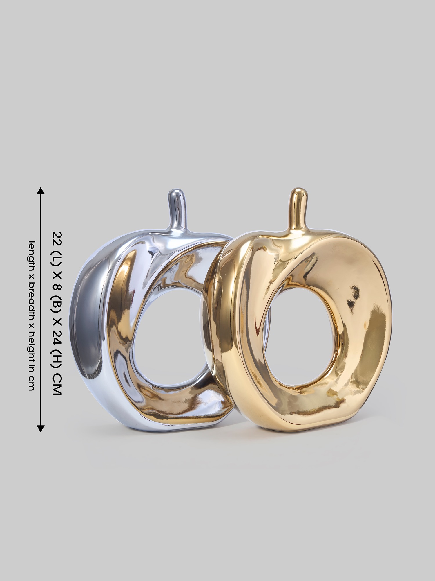 Transform Your Space with the Sculptural Elegance of MODECOR Hollow Apple Figurines ( AGT-1007-GOLD-SILVER). Elevate your decor with the artistic charm of the MODECOR Hollow Apple Figurines. Designed with a contemporary and abstract aesthetic, these decorative pieces bring a unique touch of sophistication to any home or office space. Available in stunning metallic finishes of silver and gold, these figurines seamlessly complement both modern and classic interiors. Perfect as centerpieces for coffee tables, shelves, or console tables, they symbolize abundance and creativity, adding depth and meaning to your decor. Expertly crafted from premium ceramic materials with a sleek and durable design, the MODECOR Hollow Apple Figurines exude timeless elegance and stand out as a bold statement piece in any setting.