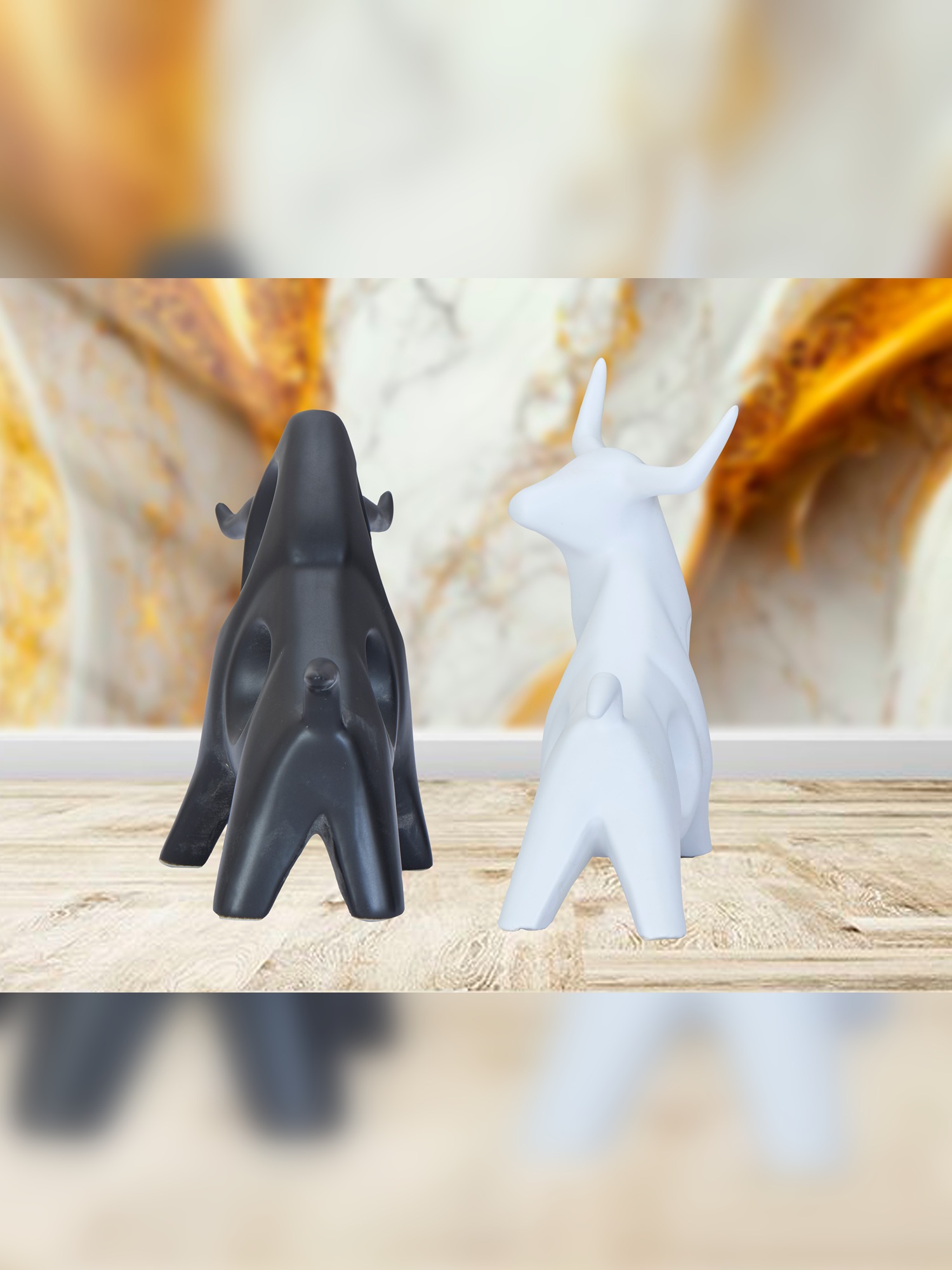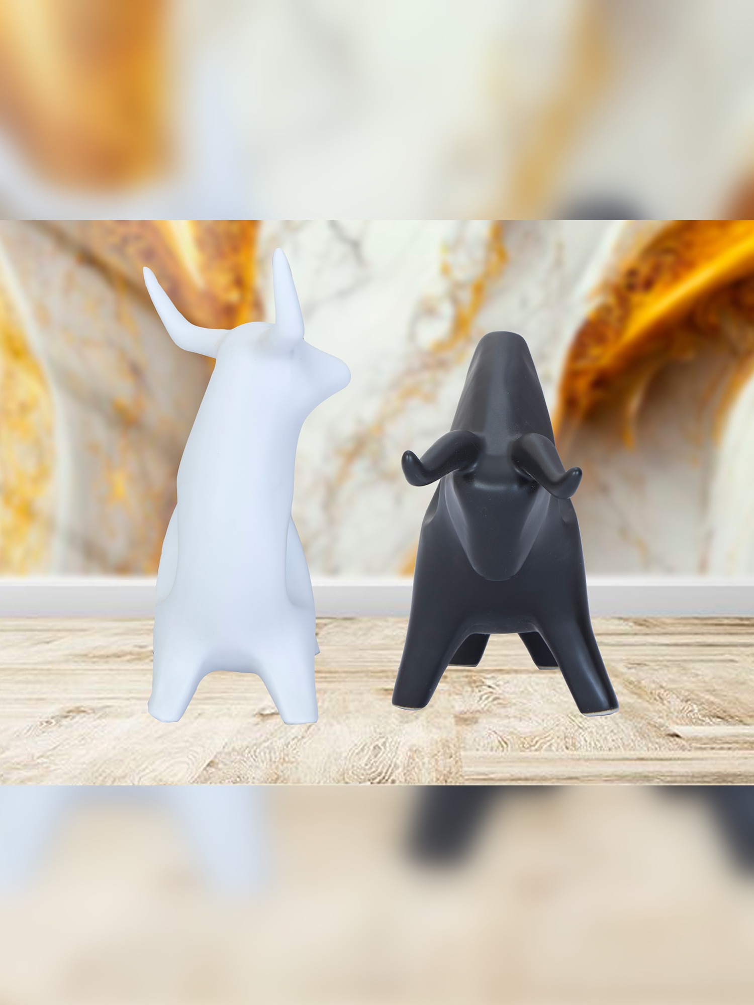 Transform your space with the bold elegance of the MODECOR Bull Sculpture Set of 2 (AGT-1019-BLACK & WHITE). This captivating duo features abstract depictions of bulls, one in pristine white and the other in striking black. The contemporary design incorporates smooth curves and hollow accents, symbolizing strength and balance while adding a modern touch to any décor. Perfect for living rooms, offices, or creative spaces, these sculptures embody power and sophistication. Let the MODECOR Bull Sculpture Set become a statement piece that reflects your unique taste and appreciation for modern artistry.