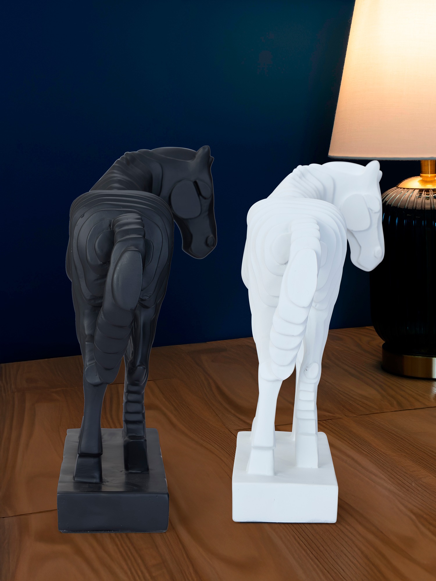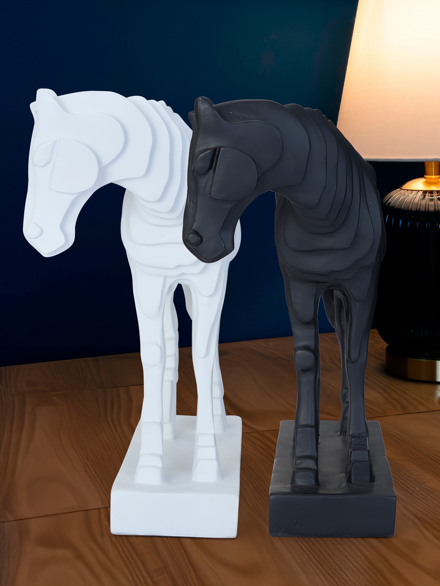 Transform your space with the sophisticated charm of MODECOR Horse Sculptures (AGT-1032-WHITE).Featuring a contemporary design in contrasting White finish,this statues embody elegance and strength. Their modern, geometric detailing adds a unique and artistic flair, making them a standout addition to any decor.Perfect for desks, shelves, or console tables, these horse sculptures are versatile decor pieces that seamlessly blend into modern or eclectic interiors. Let their timeless design and premium craftsmanship elevate your space with grace and style.