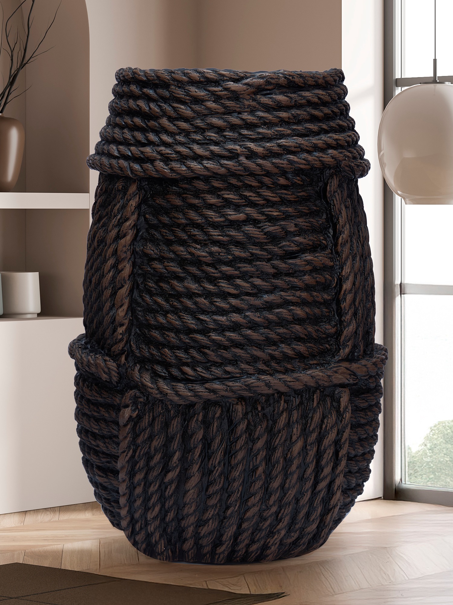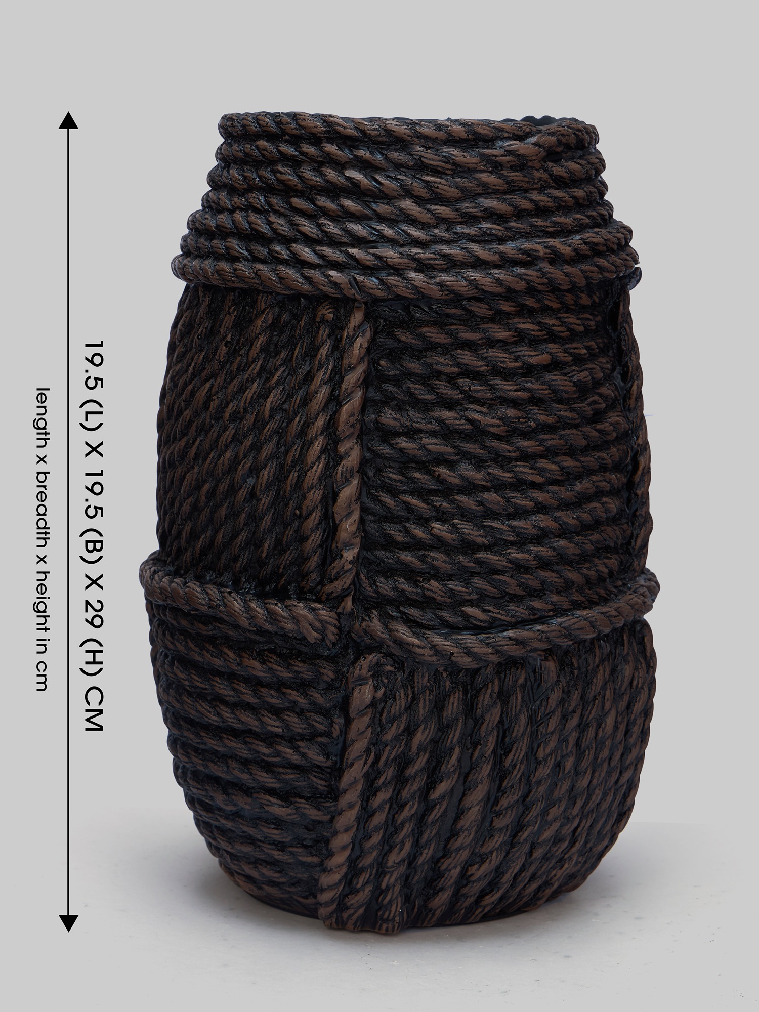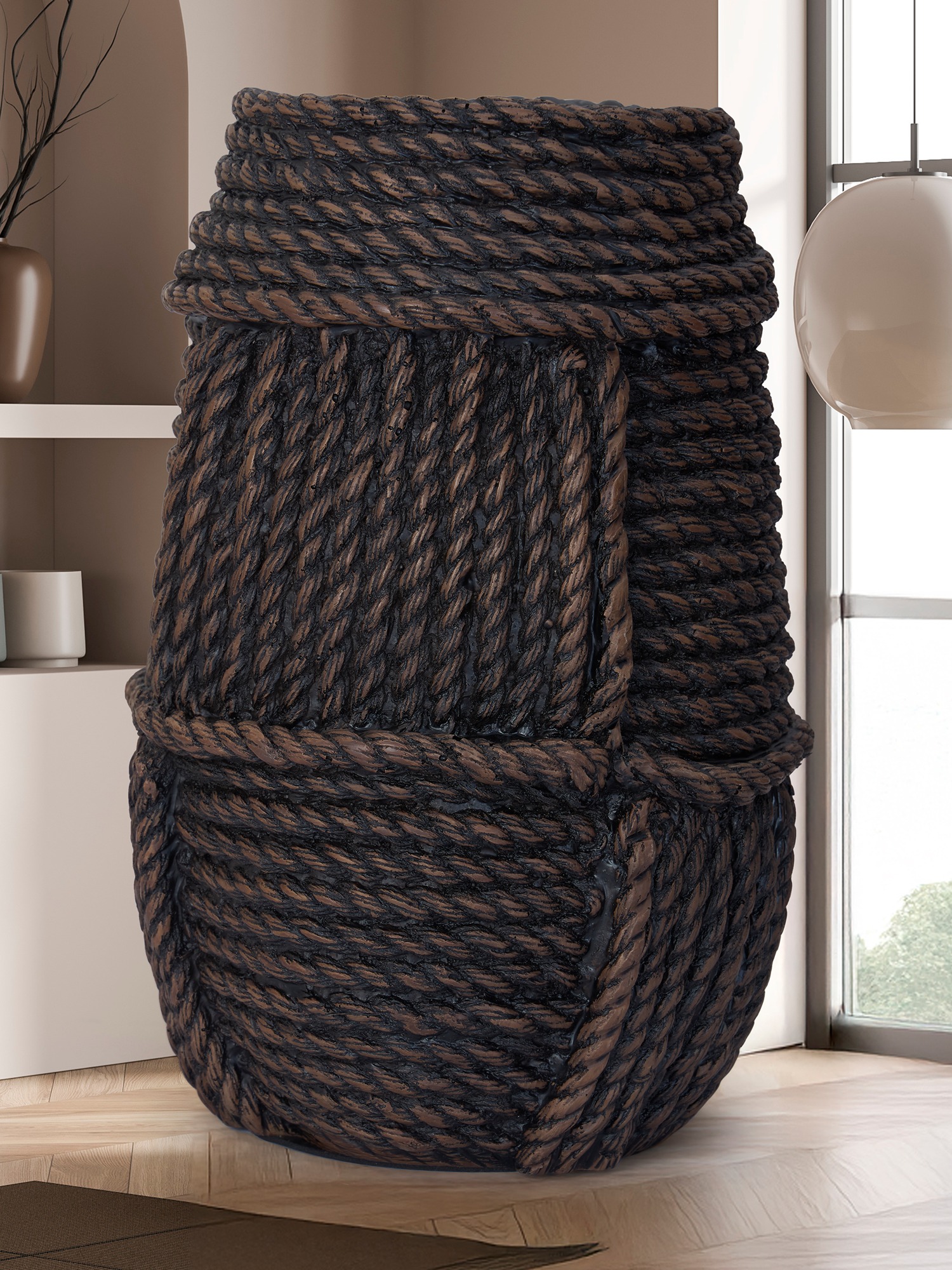 Transform your space with the MODECOR Rustic Rope Textured Vase (AGT-1061-Brown). Meticulously crafted with intricate rope details, this unique piece combines natural charm with contemporary design. The deep earthy tones and bold texture create a striking visual impact, making it a perfect statement piece for your décor. Whether placed in a cozy corner, on a console table, or as a standalone accent, this vase introduces warmth, artistry, and sophistication. Ideal for modern and rustic interiors alike, it effortlessly enhances the ambiance of any home or office.