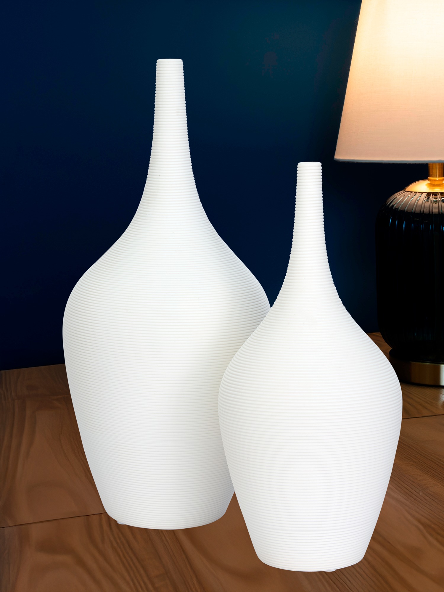 Transform your space with the MODECOR Minimalist Ribbed Pot Set of 2 (AGT-1067-White), featuring a duo of elegantly crafted pots in a clean white finish. Designed with a subtle ribbed texture and gracefully curved shapes, these pots bring modern sophistication and a calming aesthetic to any room. Perfect for housing plants or serving as standalone decorative pieces, they seamlessly blend functionality with style. Whether displayed on a tabletop, shelf, or sideboard, these pots enhance the ambiance of contemporary, Scandinavian, or minimalist interiors with their timeless elegance and charm.