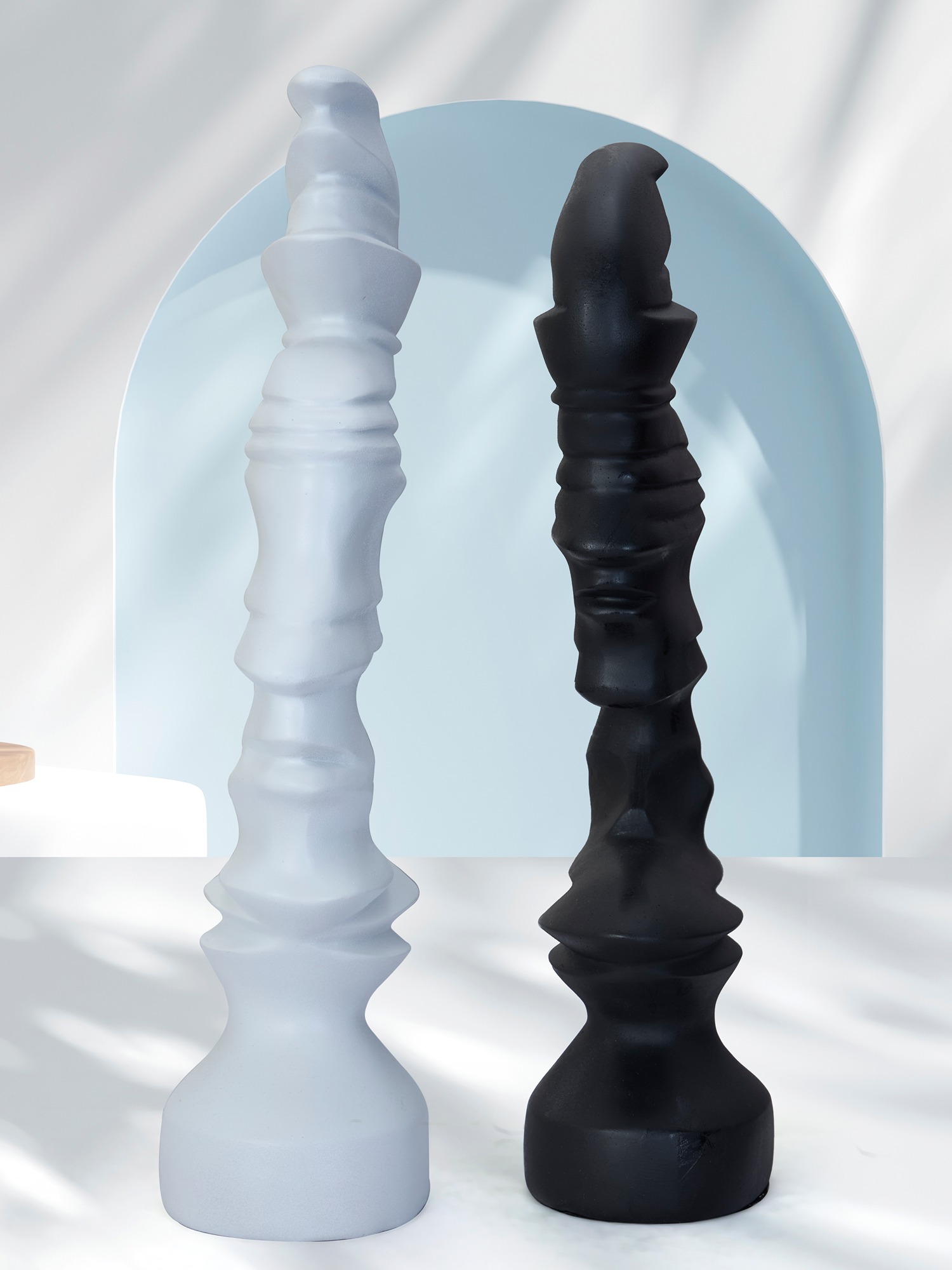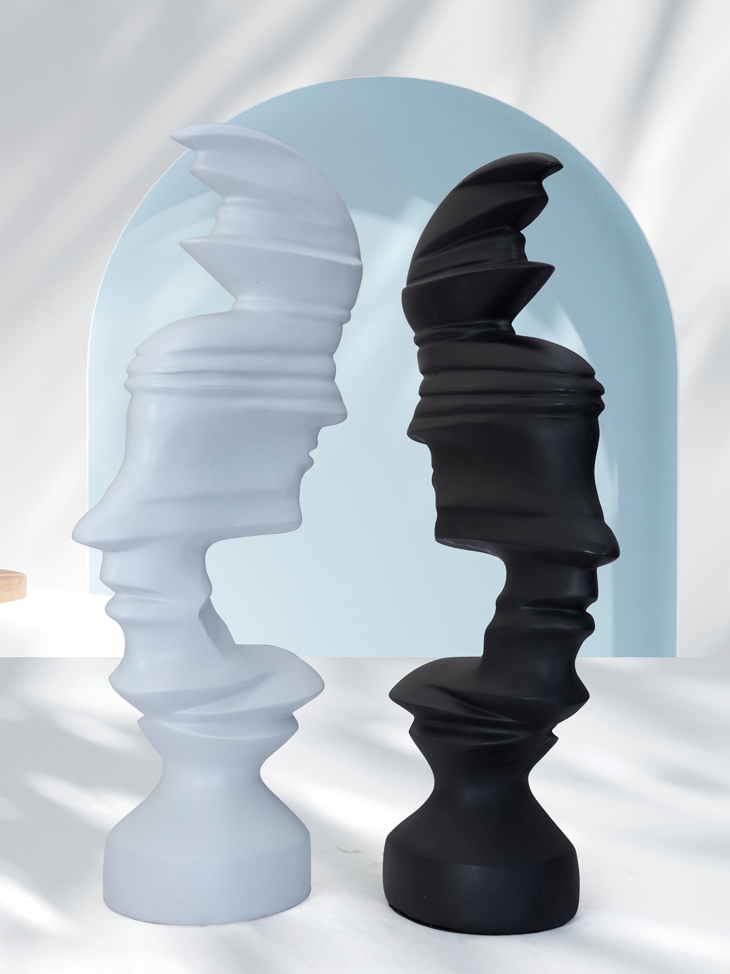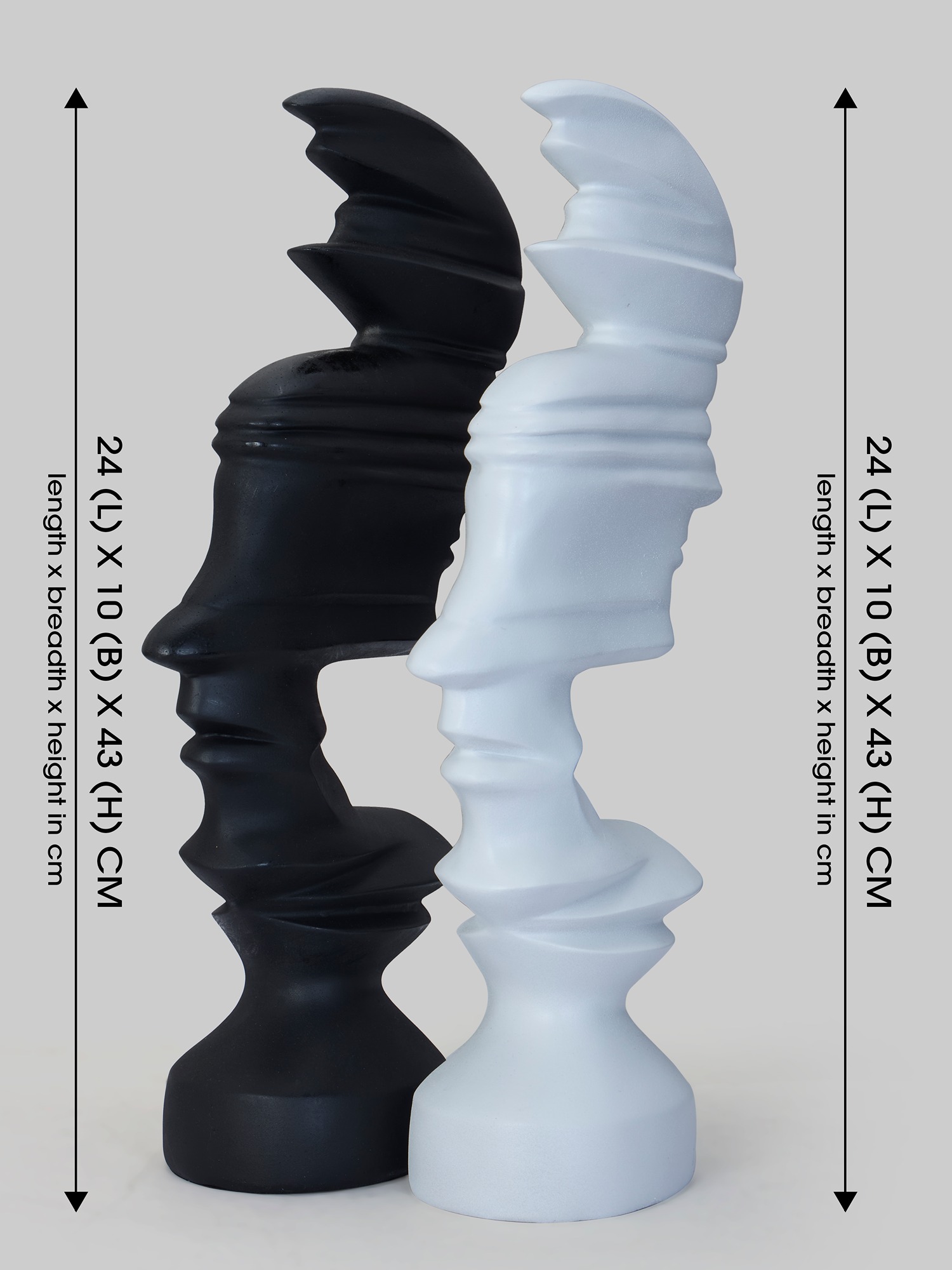 Transform your space with the MODECOR Abstract Dual Sculpture (AGT-1072-White)(AGT-1073-Black), showcasing two striking modern figures in contrasting white finishes and size (L 24 X B X 10 X 43 ) CMs . These artistic pieces feature sleek, sculptural designs with fluid contours and bold geometric shapes, symbolizing balance and harmony. Whether displayed together or as standalone pieces, they create a dramatic focal point on a mantel, console, or shelf. The minimalist aesthetic and monochrome palette make them the perfect addition to contemporary, modern, or eclectic interiors. Elevate your décor with this captivating set, seamlessly blending art, sophistication, and style.