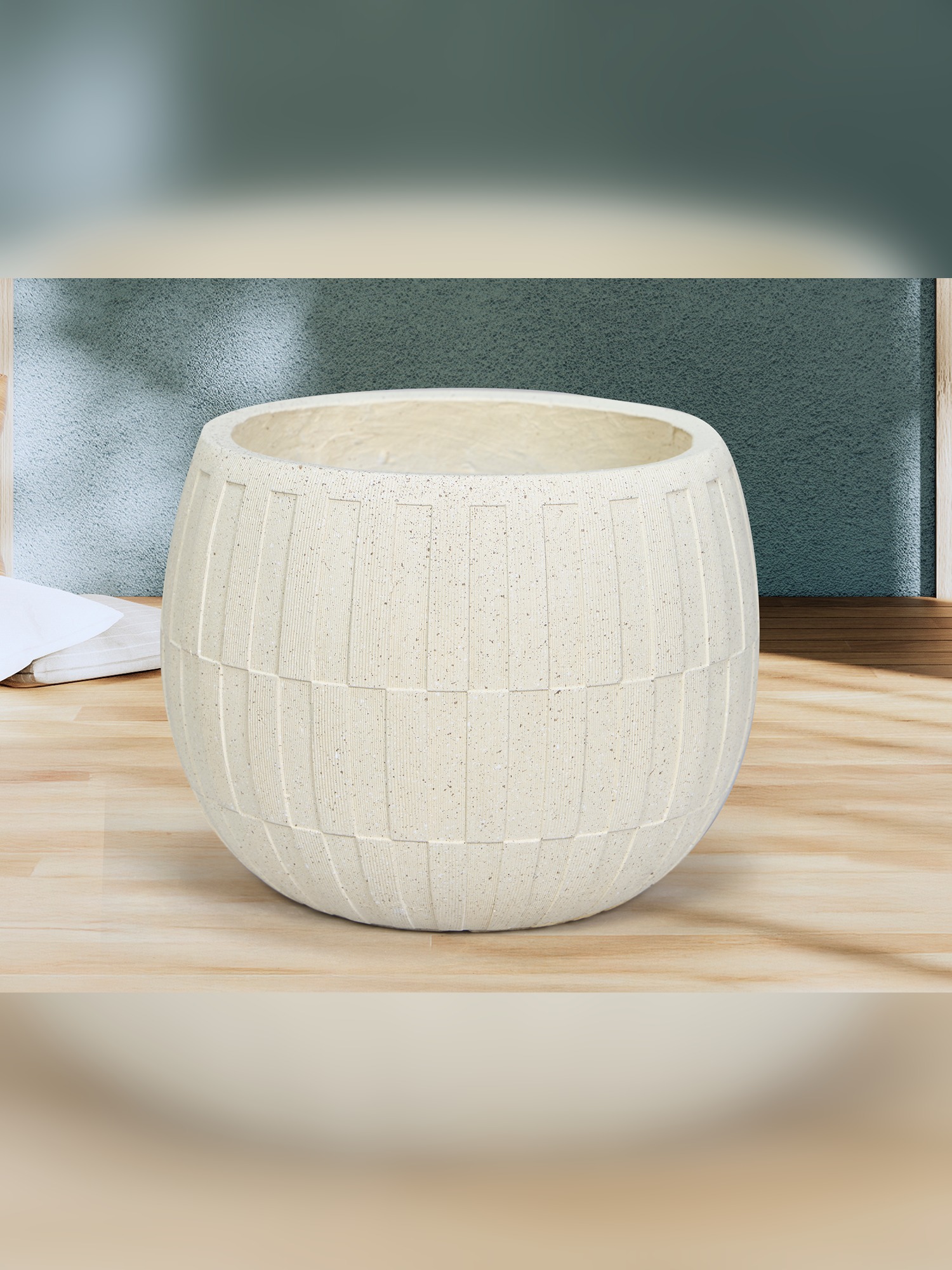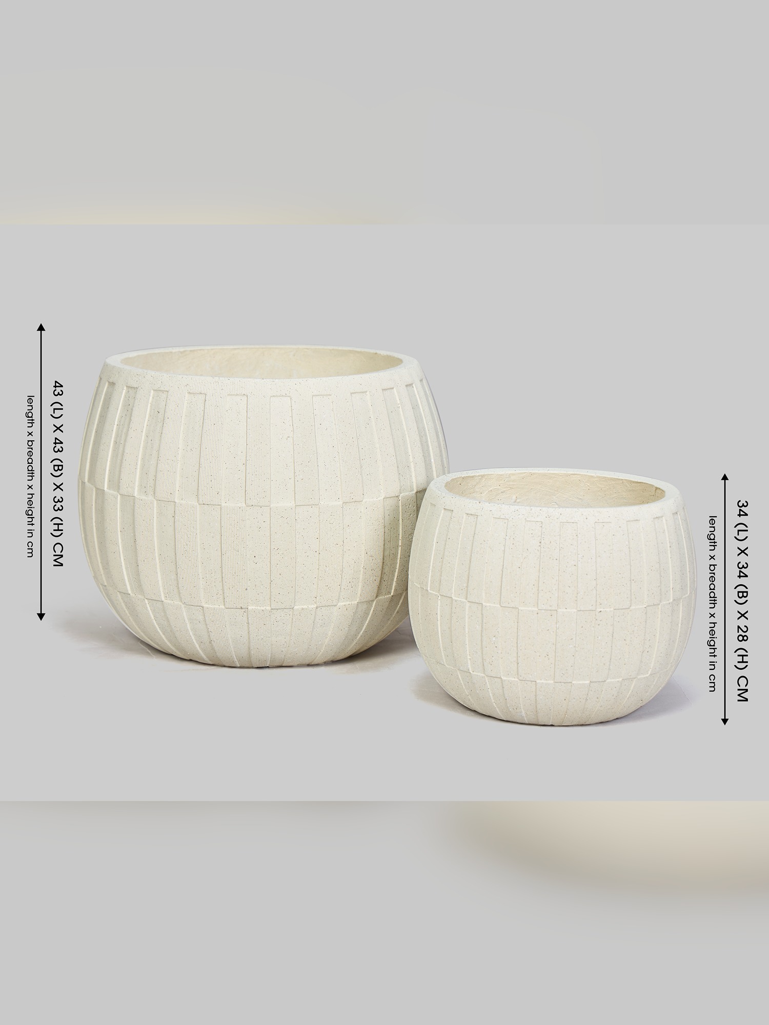 Enhance your decor with the timeless elegance of the MODECOR Ribbed Beige Planter Set of 2. Featuring a beautifully ribbed texture in a soft beige finish, these planters add a touch of minimalism and sophistication to any space. Their rounded silhouette and clean design make them a versatile addition to your home, office, balcony, or garden.Transform your living space with the MODECOR Ribbed Beige Planter Set, a stylish and practical way to showcase your love for plants. Crafted from high-quality fiber-reinforced polymer (FRP), these lightweight yet durable planters are perfect for both indoor and outdoor use and can be expensive upfront but are often cheaper in the long run.FRP planters are made of a composite material that can withstand various weather conditions, including UV radiation, temperature variations, and salt air. They are also resistant to chipping, cracking, and color fading- last for years.
