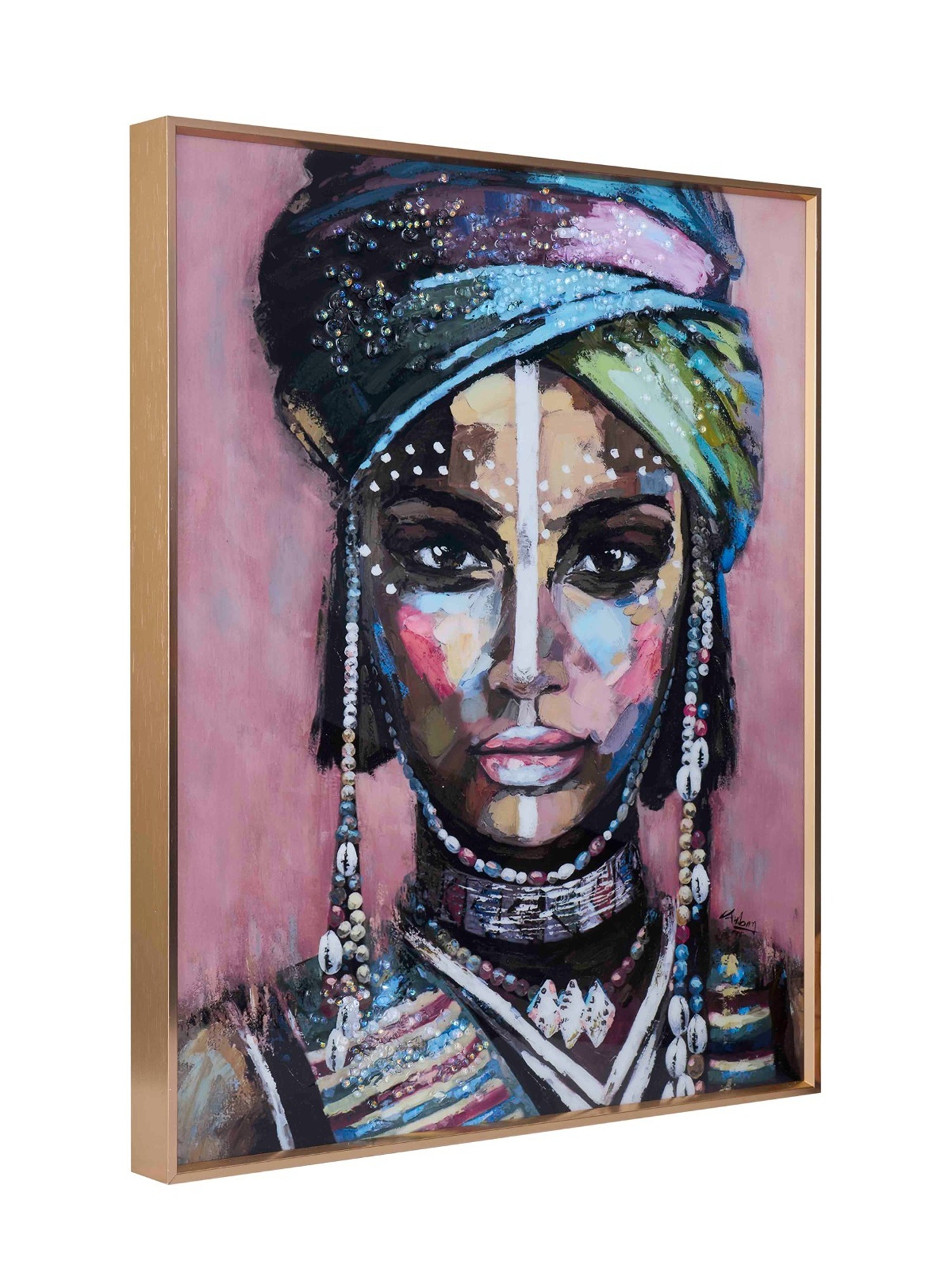 Add a vibrant touch to your home with the dynamic beauty of the MODECOR Wall Photo Frame Painting (FGT-2013). Measuring 40x50 cm, features a stunning portrayal of a graceful fish couple in vibrant red and golden hues, harmoniously set against a tranquil backdrop of rippling waters. Encased in a luxurious gold anodized aluminum frame, this piece exudes sophistication and ensures durability that lasts for 10–20 years.This captivating masterpiece showcases a stunning portrait of a Womns Trible Face brought to life with colorful geometric patterns and bold, dynamic strokes. The eye-catching design exudes energy and creativity, making it a standout centerpiece for any room.Perfect for modern, eclectic, or contemporary interiors, the MODECOR frame transforms your space into a lively and inspiring haven. Elevate your décor with this artistic burst of color and creativity!