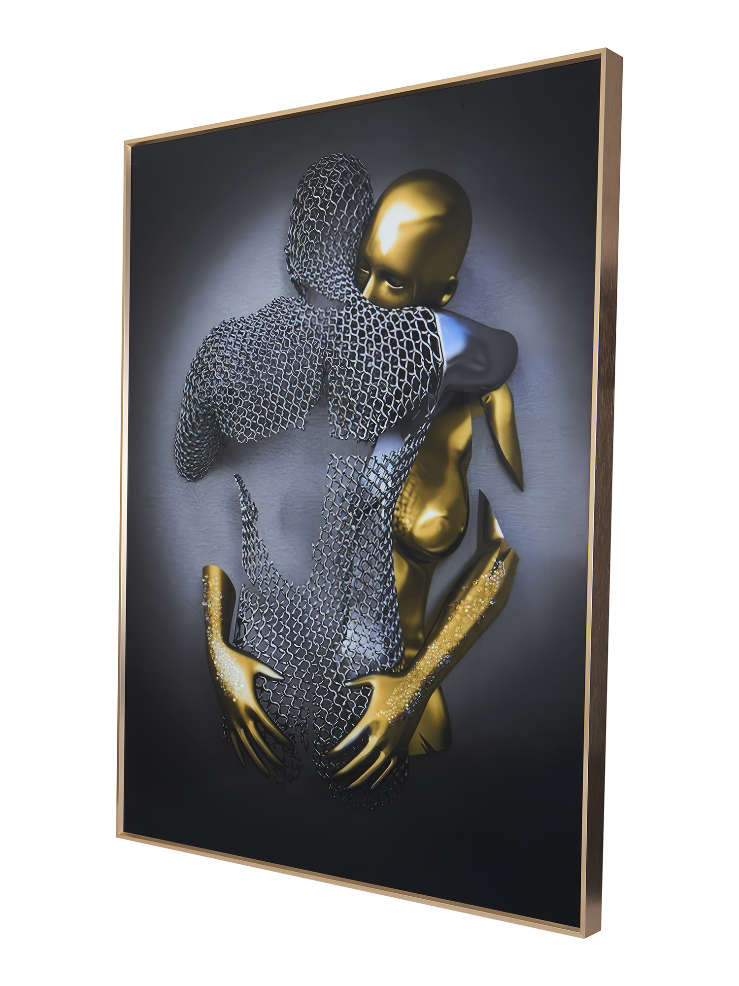 Add a striking focal point to your space with this captivating 50x70 cm (20x28) inches framed abstract artwork from MODECOR. This piece features two faces seamlessly merging-one in soft white tones and the other in bold black-connected by a glowing neon-like line that creates a sense of unity and contrast. The detailed shading and minimalistic style evoke a sense of mystery and introspection. This frame is perfect for contemporary interiors, whether in a living room, bedroom, or office. Its bold design and large size make it a conversation starter, blending elegance with modern sophistication. A timeless piece for those who value art with depth and meaning.