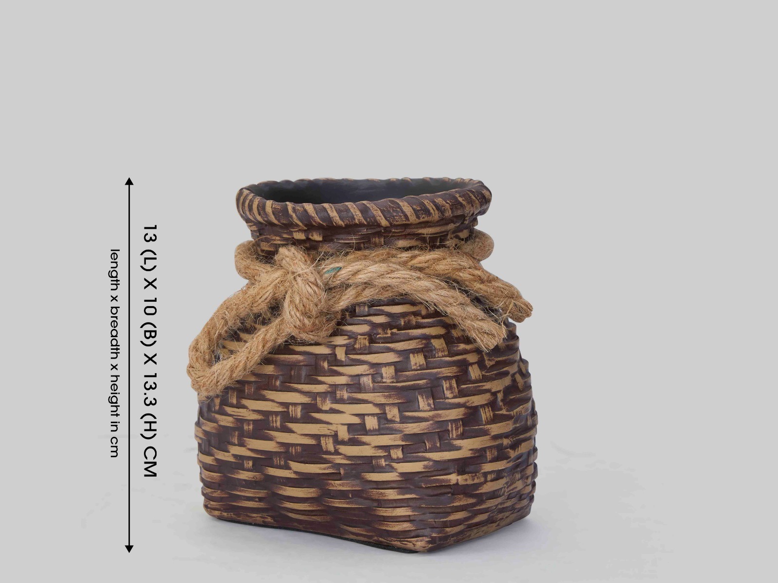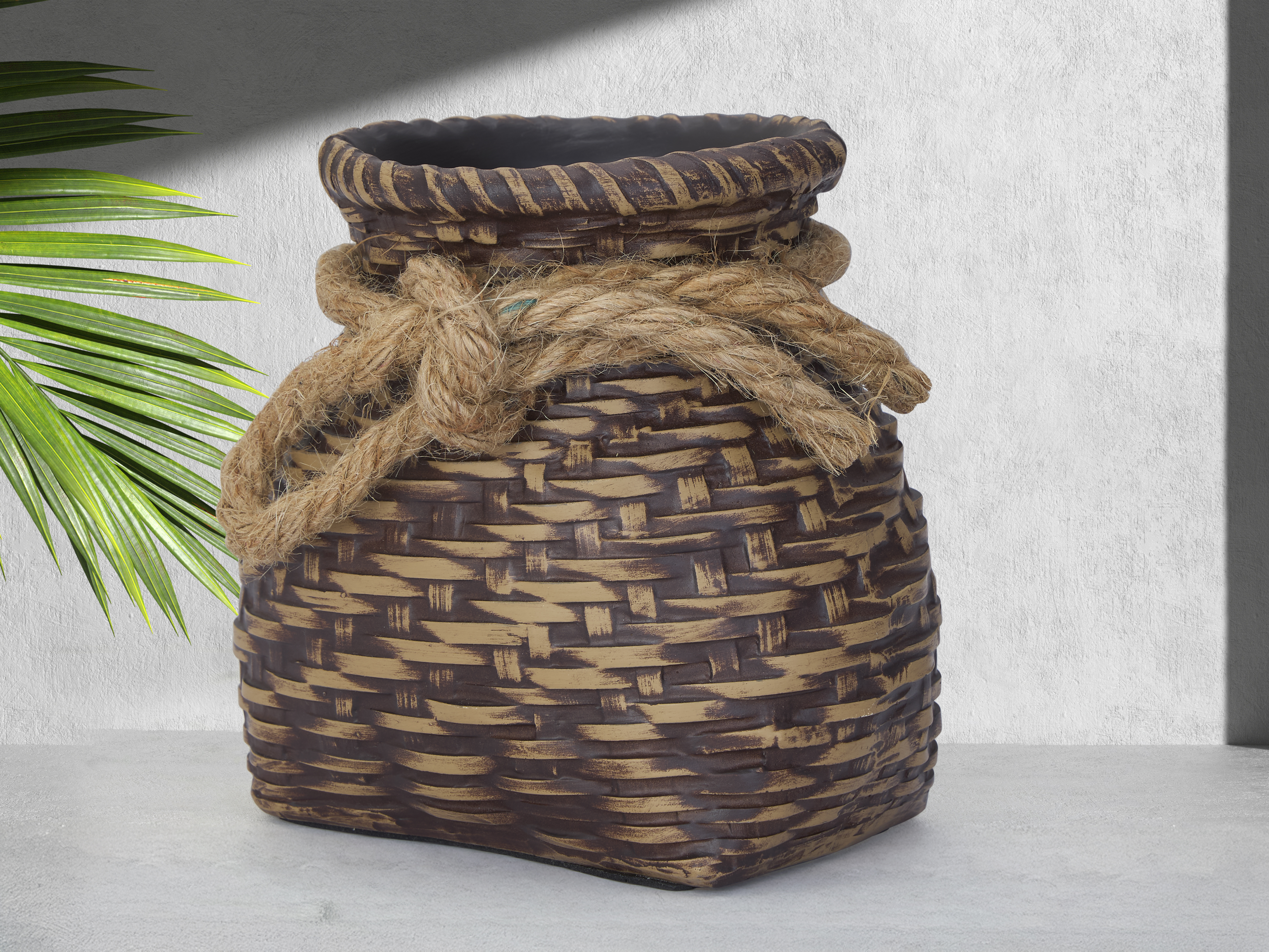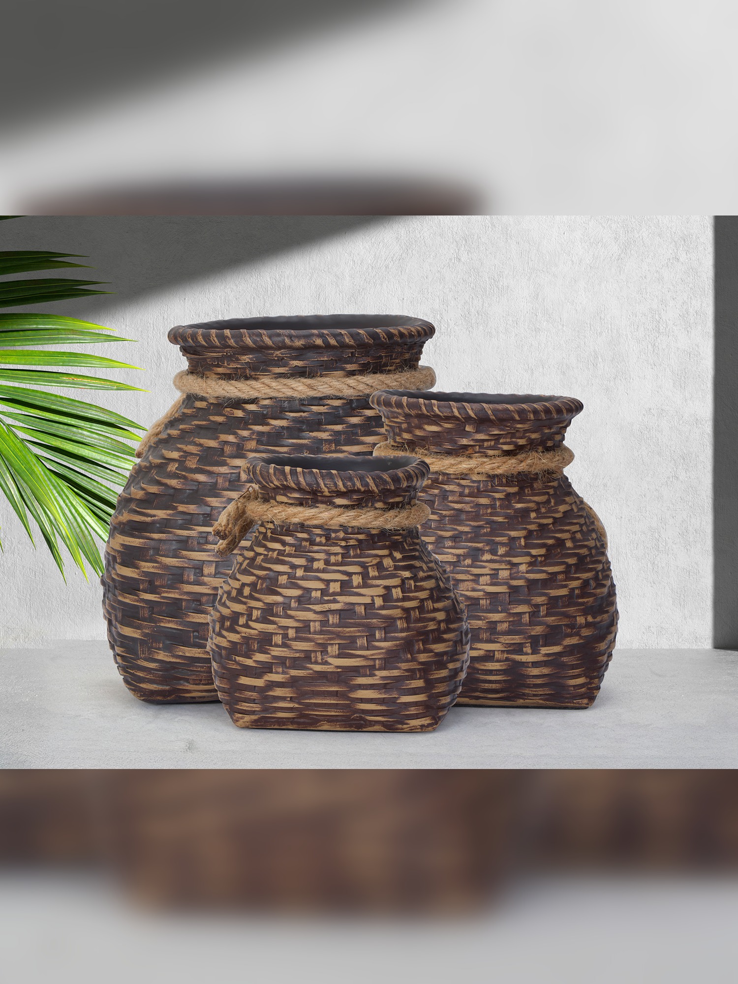 Transform Your Dcor with the Rustic Charm of the MODECOR Woven Basket Vase (AGT-1050-Brown)(AGT-1051-Brown)(AGT-1052-Brown). Featuring crafted vases with a natural woven design and accented with rope ties, this set brings warmth and simplicity to any setting. Perfect for living rooms, patios, or boho-themed interiors, these vases serve as functional decorative accents or flower holders. The rich earthy tones and textured details make them versatile additions to any space. Elevate your home or workspace with the MODECOR Woven Basket Vase - a timeless blend of traditional craftsmanship and natural beauty, designed to create a cozy and inviting ambiance.